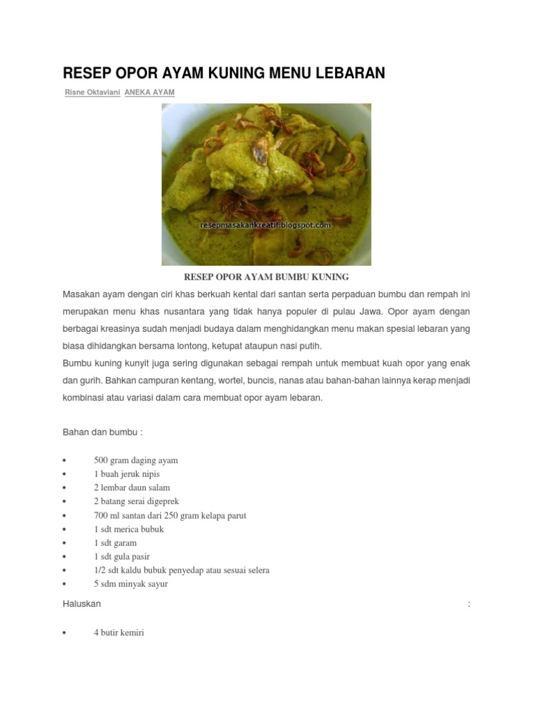 Resep Opor Ayam Spesial Dengan Bumbu Kuning Dijamin Enak Sekali Resep Opor Ayam Dan Resep Makan Lainnya