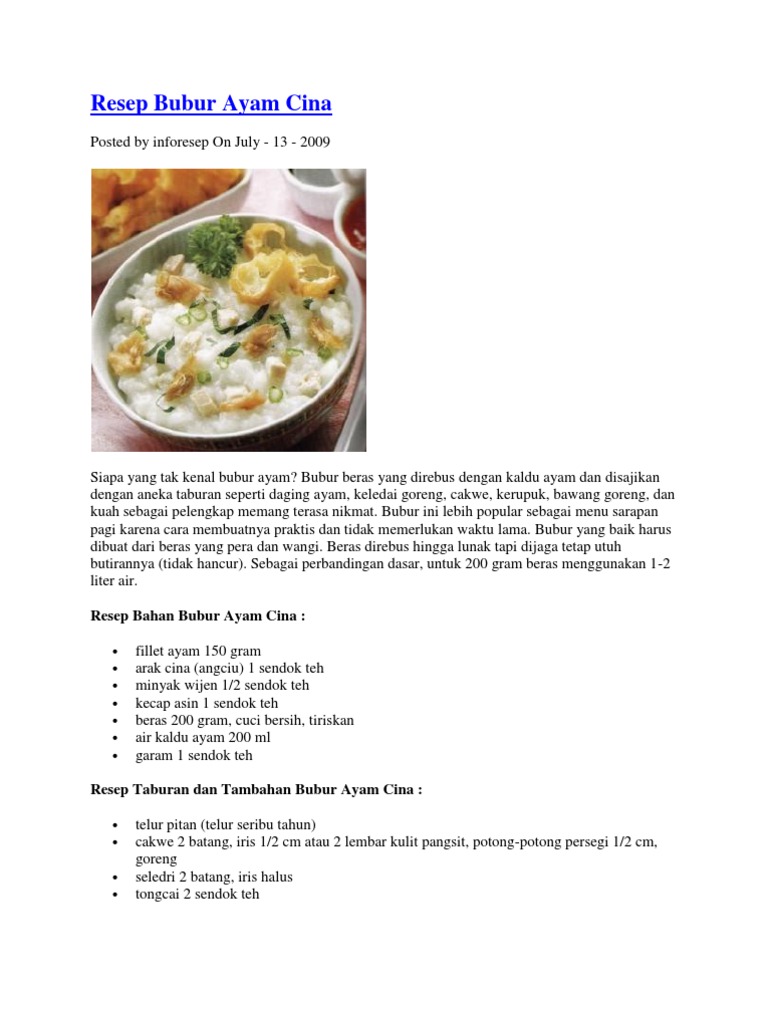 Resep Bahan Bubur Ayam Cina