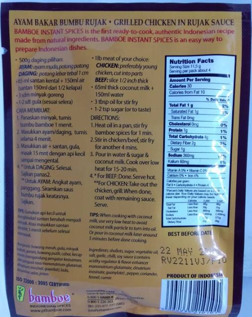 Bamboe Export Ayam Bakar Bumbu Rujak 46gram Bumbu Dapur Bumbu Masak Bumbu Instan Lazada Indonesia
