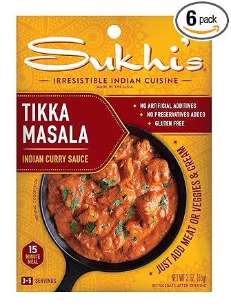 Amazon Com Sukhi S Gluten Free Tikka Masala Sauce 3 Ounce Packets Pack Of 6 Curry Sauces Grocery Gourmet Food
