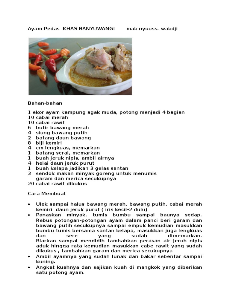 Resep Ayam Pedas Khas Banyuwangi Pr Uuenaktenanrek Oleh Nadia Hayu Cookpad