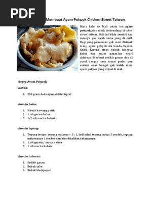 Resep Cara Membuat Ayam Pokpok Chicken Street Taiwan