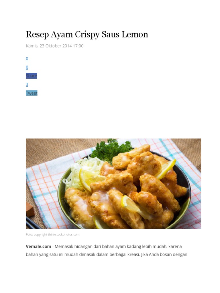 Ayam Krispi Saus Lemon Segar Praktis Enak Resep Resepkoki