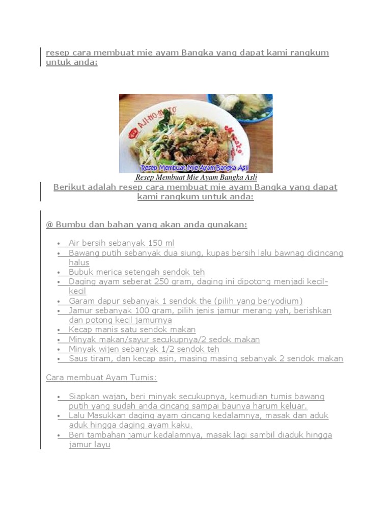 Cara Membuat Mie Ayam Bangka Asli Paling Enak Resep Masakan Indonesia