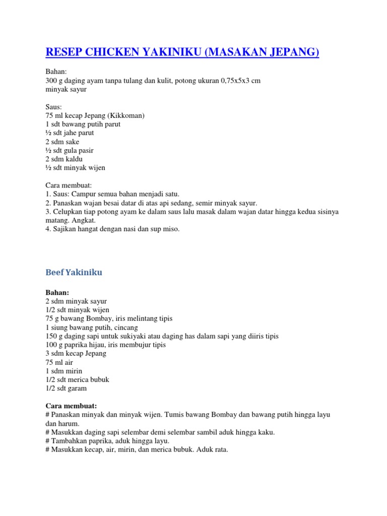 Resep Masakan Chicken Yakiniku Totoktriyadi Com