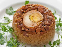 Resep dan cara membuat nasi tim ayam jamur menggunakan rice cooker.