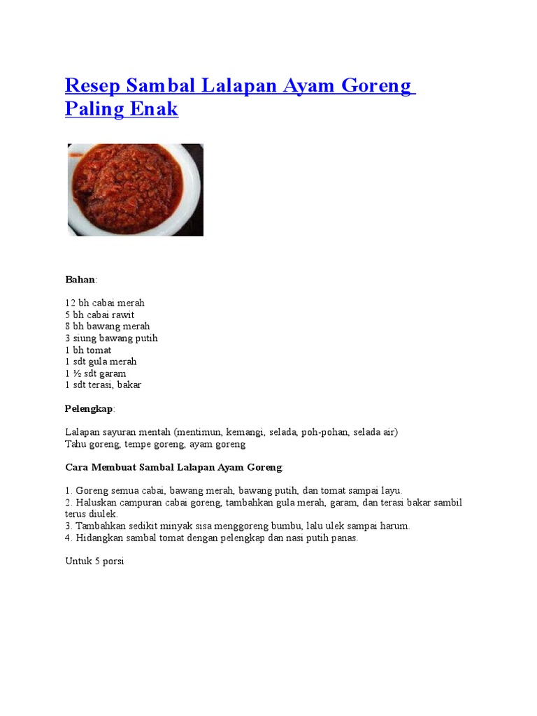 Resep Sambal Lalapan Ayam Goreng Paling Enak Docx Document