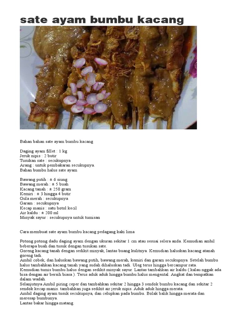 Resep Sate Ayam Bumbu Kacang Nikmat Gedubar Com